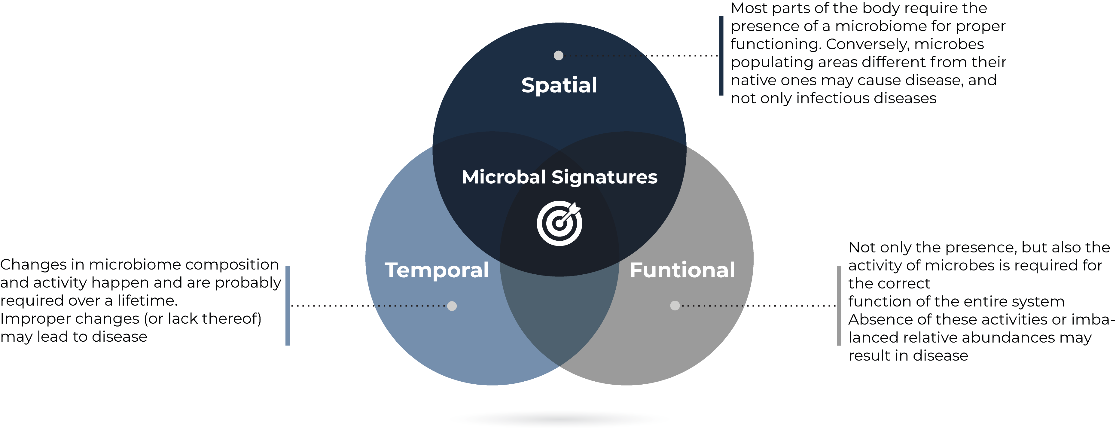 To the extent that disease-causing microbiome alterations exist in humans, discovery of these causal microbiome signatures is the holy grail of microbiome diagnostics and drug development. Nonetheless, the mechanisms behind these relationships are usually tremendously complex and involve not only the microbes themselves, but also their metabolites and aspects of humangenetics and the immune, endocrine, and nervous systems.